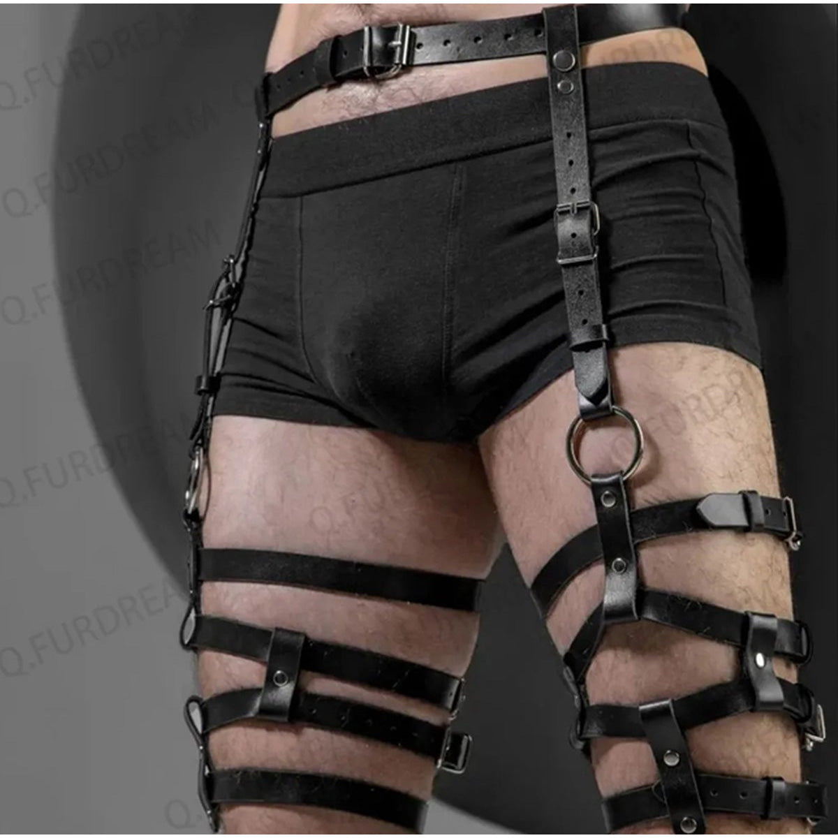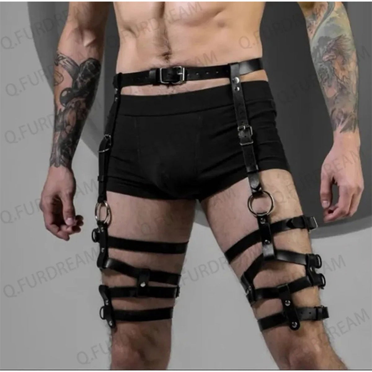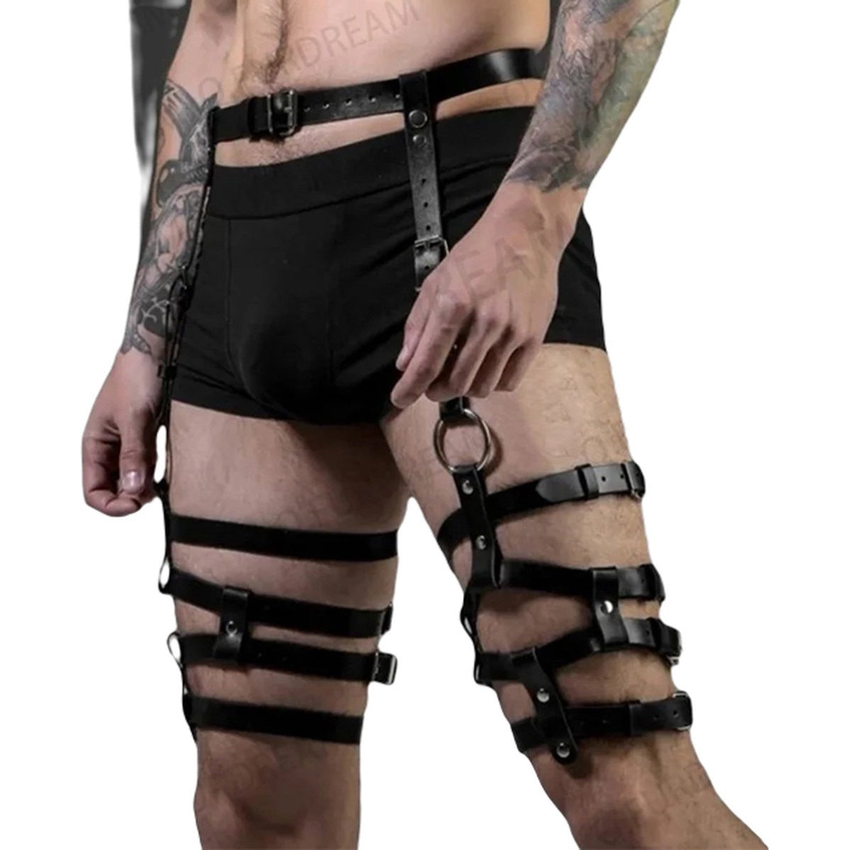 Stap in een wereld van verleiding en verkenning met dit unieke lederen benen harnas, speciaal ontworpen voor mannen die op zoek zijn naar een opwindende ervaring. Dit erotische bondage harnas combineert de sensuele kracht van leer met verstelbare kousenbanden en stevige gespen voor een perfecte pasvorm. Of je nu nieuw bent in de wereld van BDSM of een ervaren liefhebber, dit harnas belooft een erotische reis vol opwinding en sensatie. De veelzijdigheid van de verstelbare banden biedt een scala aan mogelijkheden om je stoutste fantasieën te verkennen en te beleven. Klaar om je te laten leiden door passie en verlangen? Ontdek de ongekende opwinding van dit harnas en omarm de spannende wereld van sensuele binding.