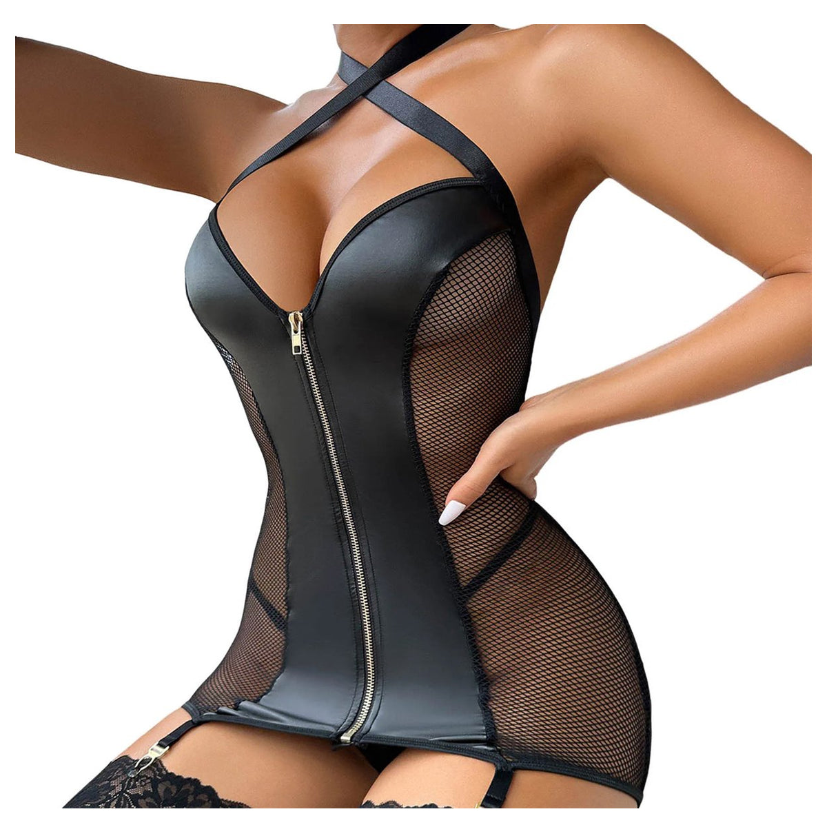 This erotic dress combines seduction with a touch of excitement. Crafted from high-quality PU leather, the short, leather mini dress features a seductive backless design. With sheer accents and a wet latex look, this dress exudes a powerful sensuality. The zipper adds a touch of mischievous playfulness, making it perfect for special moments where you want to ramp up the excitement.