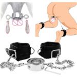 De ballenklem, gemaakt van duurzaam roestvrij staal, is voorzien van zachte binnen voering om comfort te garanderen terwijl het de druk op de balzak regelt. De toevoeging van de voetboeien biedt een extra dimensie aan dit sensuele avontuur, waardoor de gebruiker verschillende posities kan verkennen en een gevoel van overgave kan ervaren.