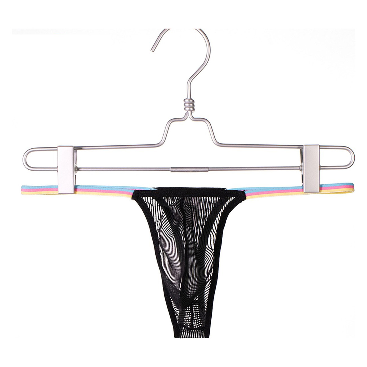 Zeer leuke en doorzichtige G string. De string heeft een regenboog band. De string is van zeer goede kwaliteit en heeft een zeer secy uitstraling door de transparantie. Bij gebruik zie je de penis in de string liggen.
