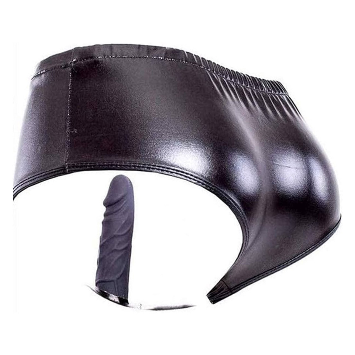 Deze unieke en sexy onderbroek heeft aan de binnenzijde een dildo met een lengte van ongeveer 10 cm en een diameter van circa 3,5 cm. De slip is geschikt voor mannen en vrouwen met kledingmaat S, M en L (one size), gemaakt van lederlook materiaal in het zwart. De pasvorm is aansluitend en het product is fijn afgewerkt voor extra draagcomfort en genot.