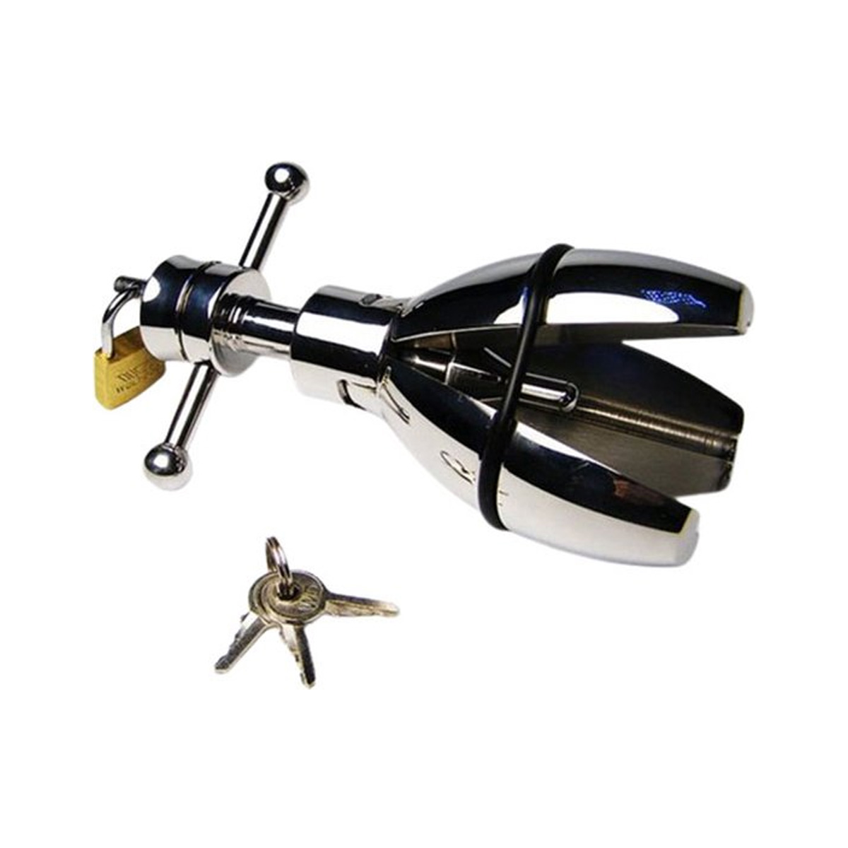 Zeer luxe RVS verstelbare anale uitrekker/speculum met drie verstelbare poten en een uniek slot met sleutel. Geschikt voor zowel anaal als vaginaal gebruik en ideaal voor spannende BDSM-avonturen. Het product is glad afgewerkt, eenvoudig te reinigen en te verstellen tot een breedte van 6 cm. Wordt discreet geleverd. Het product is glad afgewerkt, eenvoudig te reinigen en te verstellen tot een breedte van 6 cm. Wordt discreet geleverd.