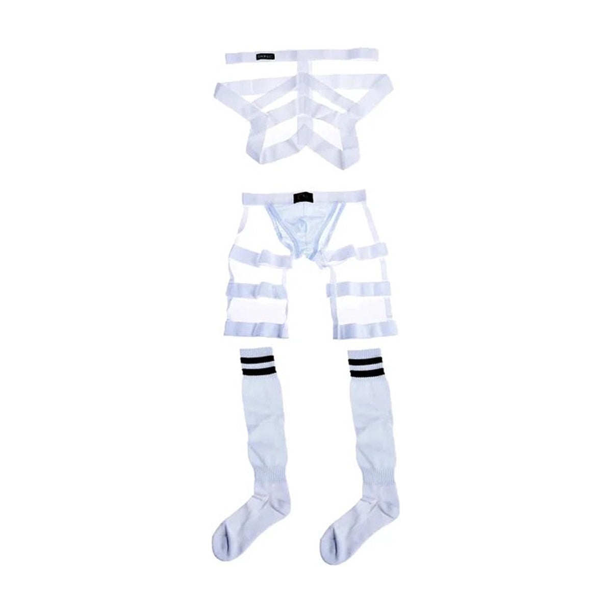 Het 3-delige bondage harnas voor heren biedt een complete en uitdagende look voor liefhebbers van BDSM en erotische avonturen. Dit harnas is ontworpen om het volledige lichaam te omhullen en bestaat uit drie hoofdcomponenten: een jarretelharnas slip, kousen en een borstharnas, waardoor het een veelzijdig BDSM-kostuum is.