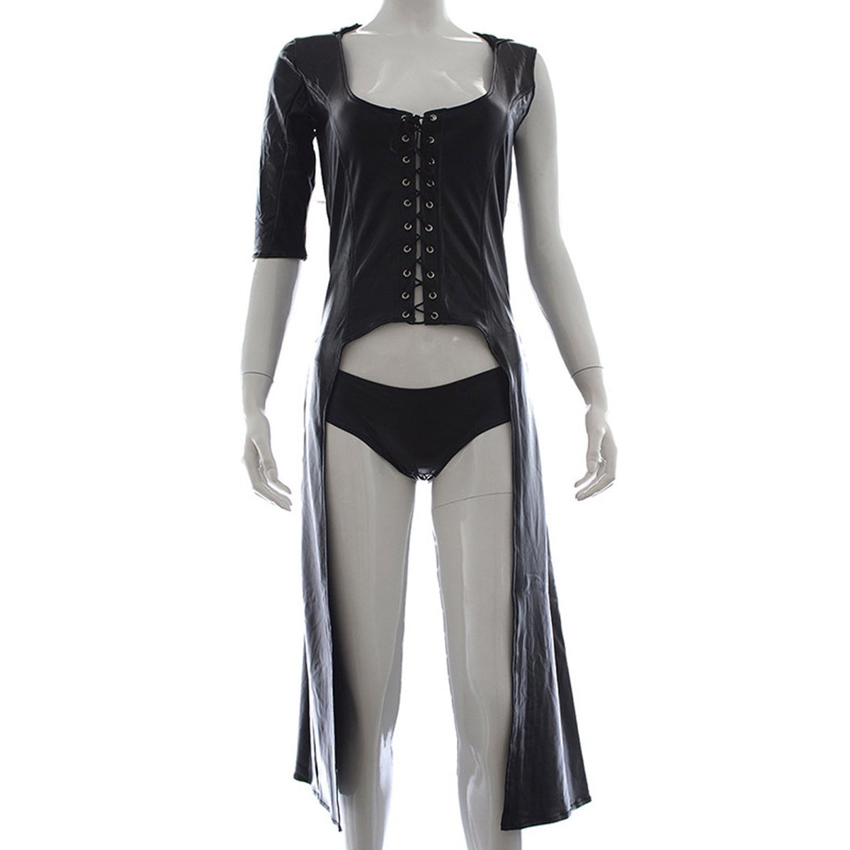 Deze lederen BDSM Bondage jurk is van zeer goede kwaliteit, en door zijn gedetailleerde afwerking, zeer erotisch en sexy. De jurk is zowel aan de voor- als achterkant open. Aan de voorkant kan hij gesloten worden tot aan ongeveer de navel met de veter, en aan de achterzijde kan je hem met de bijgeleverde veter zelf dichtmaken zoals jij de jurk het meest sexy vind staan. De jurk heeft ook een capuchon.