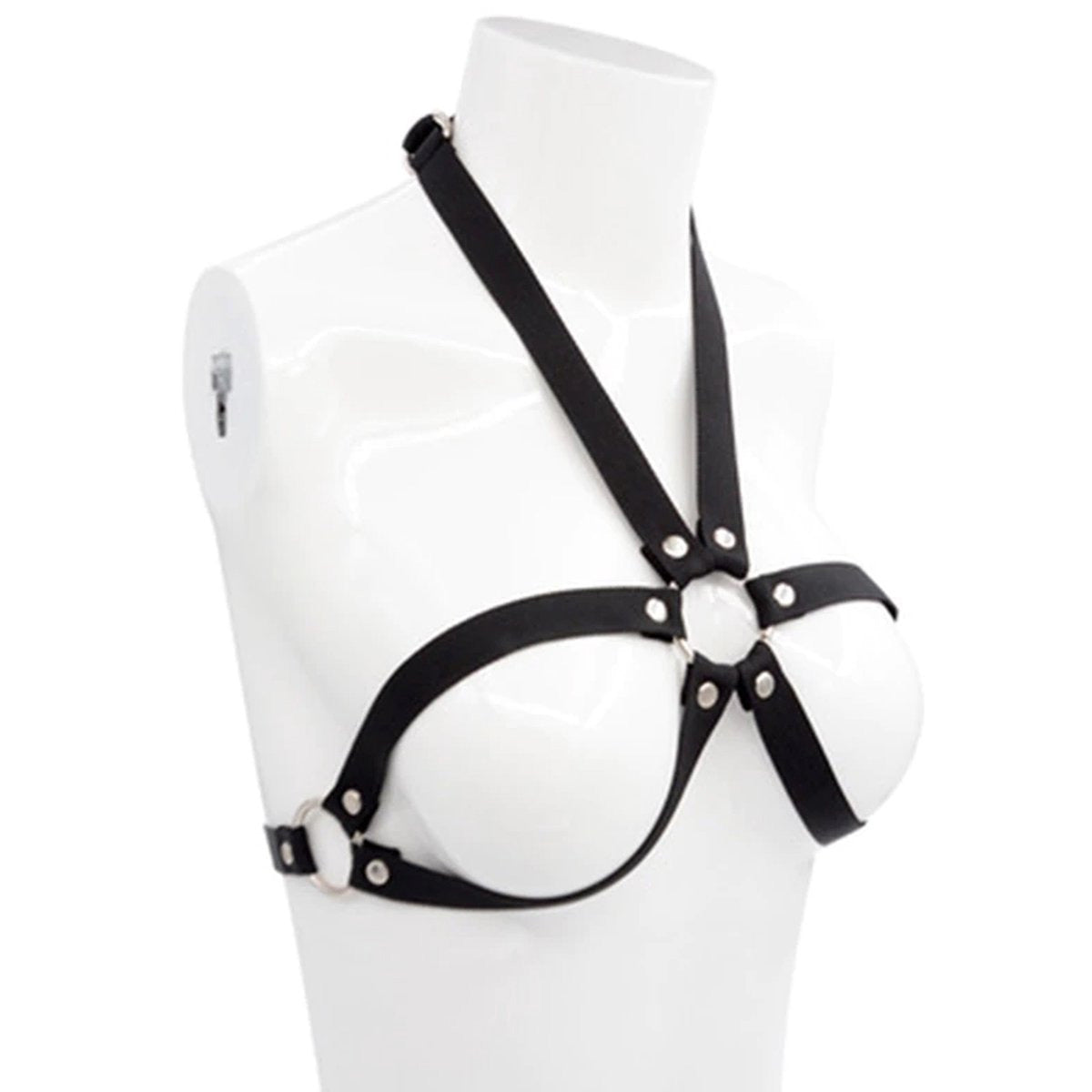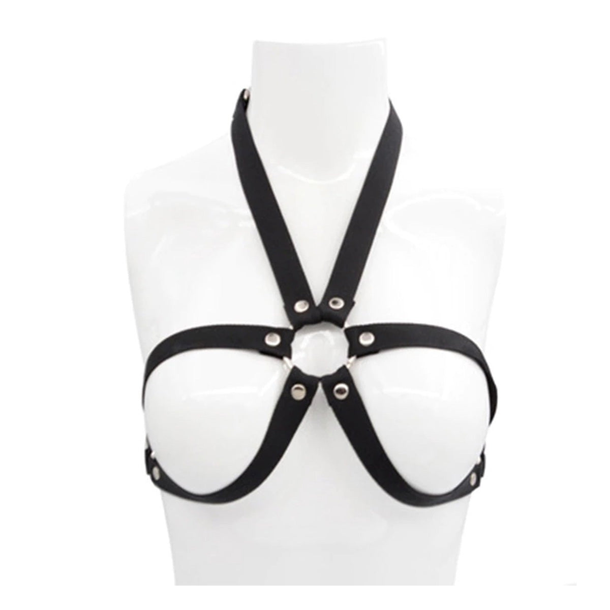 Verstelbare bondageharnas voor de borsten, gemaakt van stevig materiaal. Ideaal voor BDSM, bondage en erotische lingerie.