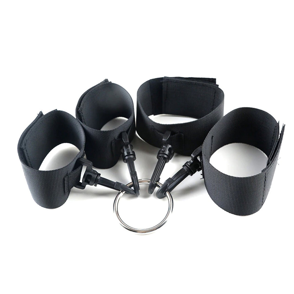 Extreme bondage set met 1 ring en 4 verstelbare boeien voor armen en benen. Luxe uitvoering, stevig en comfortabel voor intensief SM/BDSM gebruik.