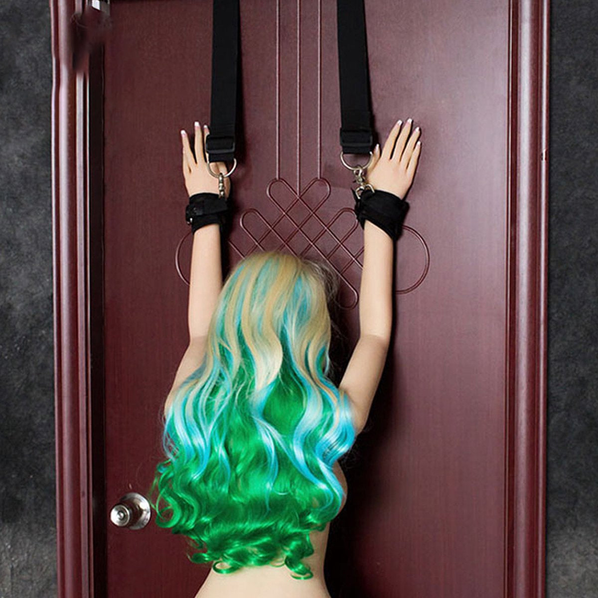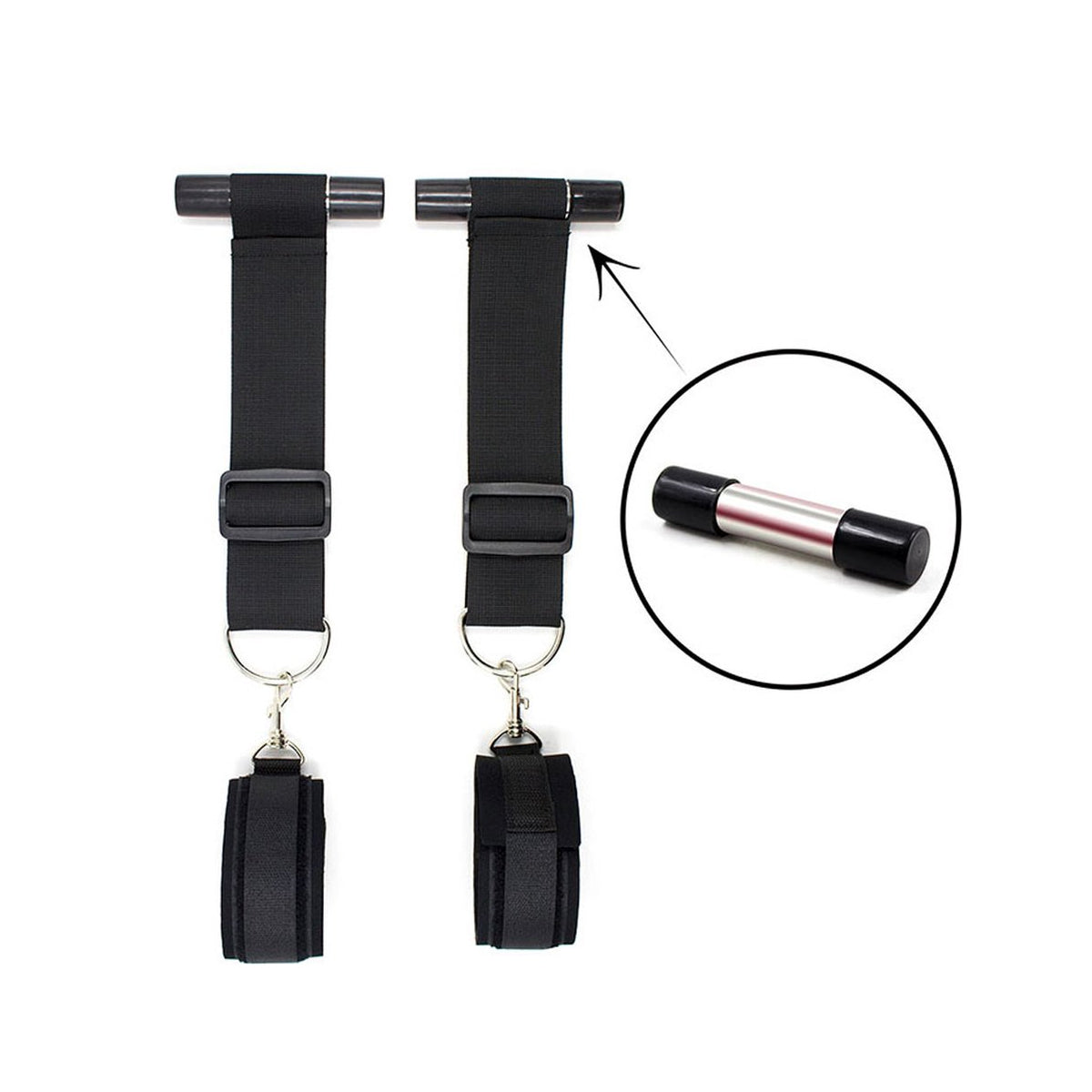 Extra stevige handboeien geschikt voor bevestiging aan de deur. Ideaal voor bondage en verschillende seksstandjes. veilige veiligheid en variatie in SM/BDSM-spel.