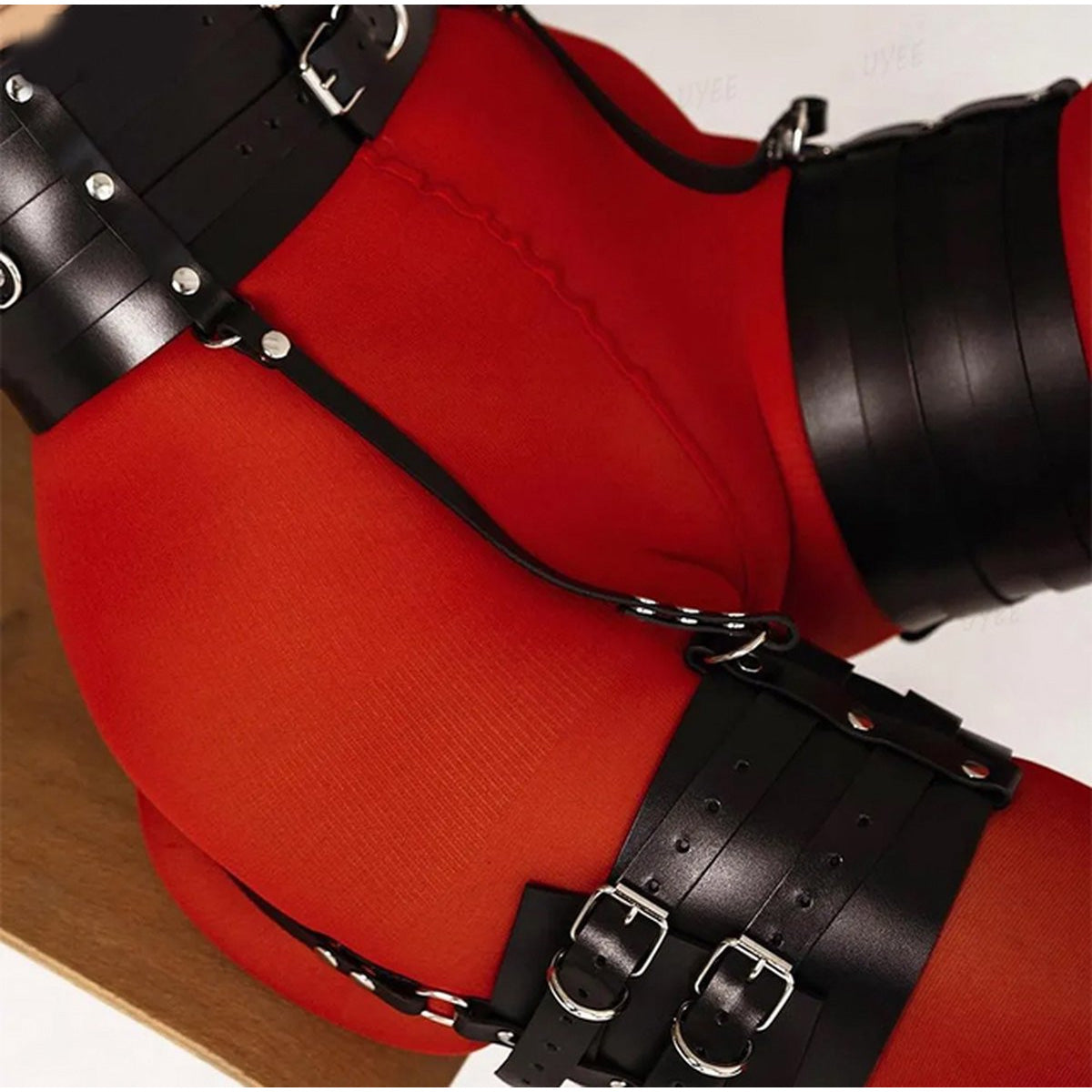 Duik in een wereld van sensuele verkenning met deze weergaloze 2-delige bondageset, ontworpen om de zintuigen te prikkelen en verlangens te ontketenen. Gemaakt van luxe leer biedt dit harnas een combinatie van heup- en bovenbeenbanden, speciaal ontworpen voor een opwindende ervaring. De verstelbare banden zorgen voor een perfecte pasvorm, terwijl het luxe materiaal de ultieme erotische sfeer creëert. Of je nu nieuw bent in de wereld van kinkyness van een ervaren liefhebber, dit heeft een enorme impact op een reis vol spanning en intieme ontdekkingen. Laat je verleiden door de sensuele aantrekkingskracht van dit harnas terwijl je jezelf onderdompelt in de vloeibare wereld van sensuele binding.