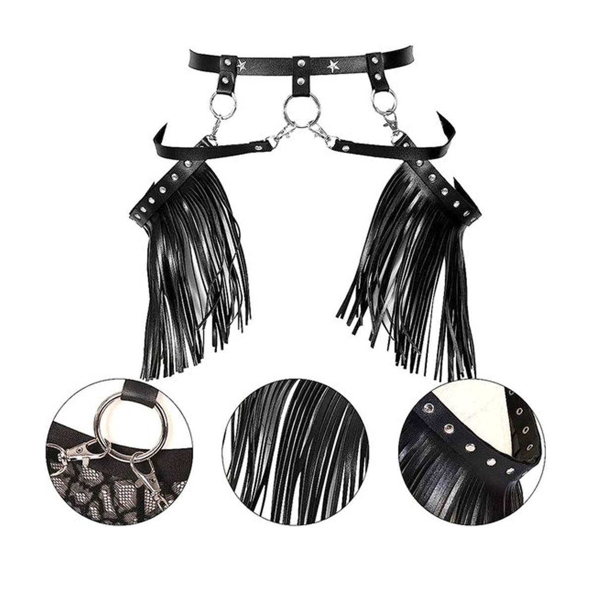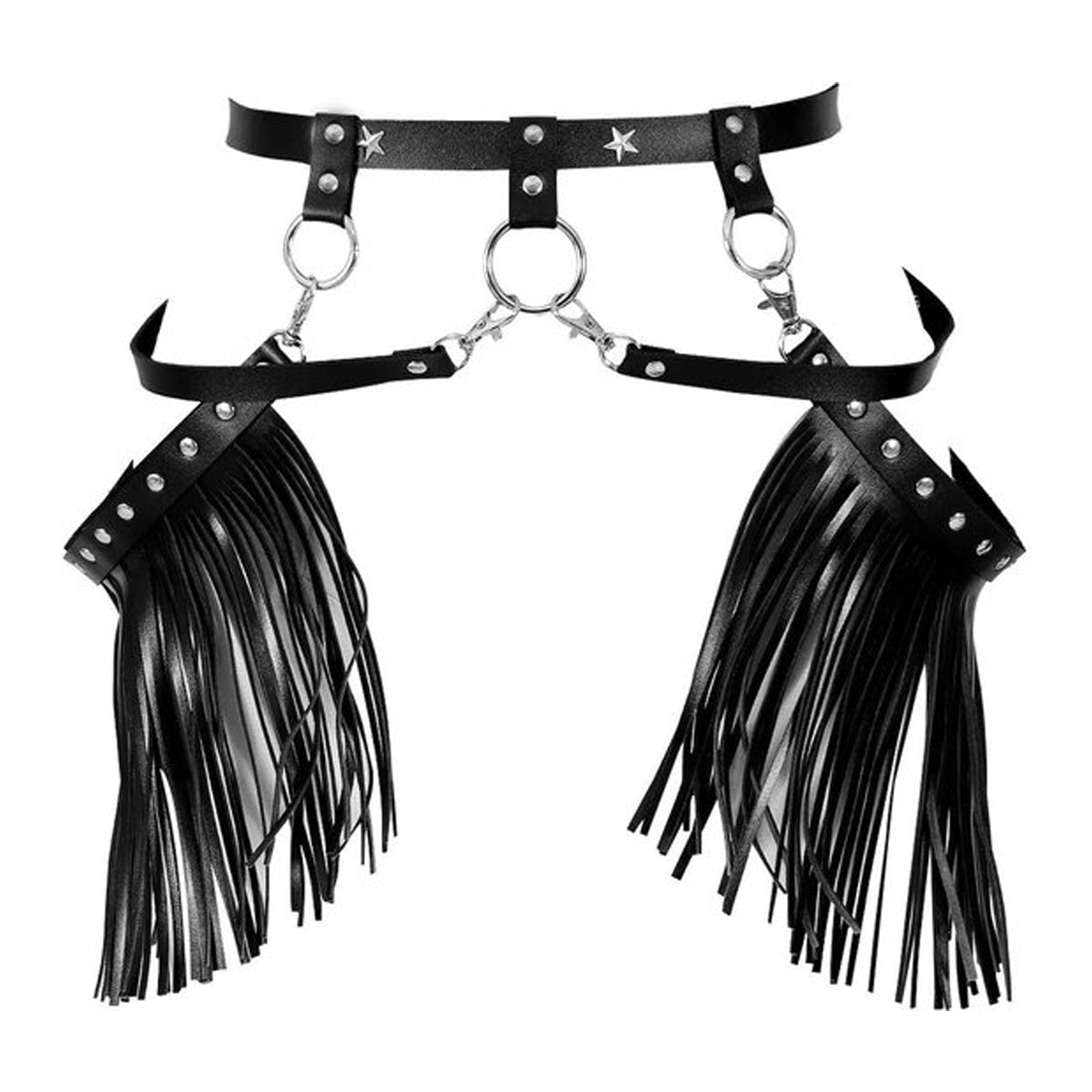 Het harnas is voorzien van speelse kwastjes aan de onderkant, wat een erotische en ondeugende toets toevoegt aan je look. Het accentueert je figuur en laat je er verleidelijk kijken.