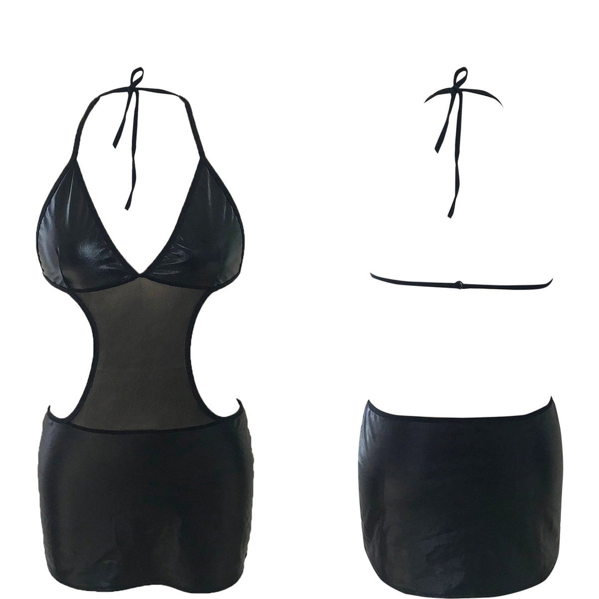 Deze pikante latex jurk is een absolute blikvanger! Met zijn holle kosten en open rug zorgt hij voor een verleidelijke en uitdagende look. De transparante look aan de voorkant rond de romp geeft een subtiele maar sensuele hint van wat er onder ligt. De jurk is verstelbaar middels een bandje aan de achterzijde, zodat je de pasvorm kunt aanpassen aan je wensen. Bovendien is de jurk bij de nek vast aan de knopen, waardoor je de zoom eenvoudig strakker of losser kunt maken voor de perfecte pasvorm. De erotische en sexy uitstraling van deze jurk zal je onweerstaanbaar maken en is perfect voor spannende momenten in de slaapkamer of voor een gewaagde outfit tijdens een speciale gelegenheid. Durf jezelf te laten zien in deze uitdagende latex jurk en laat je verleidelijke kant zien!