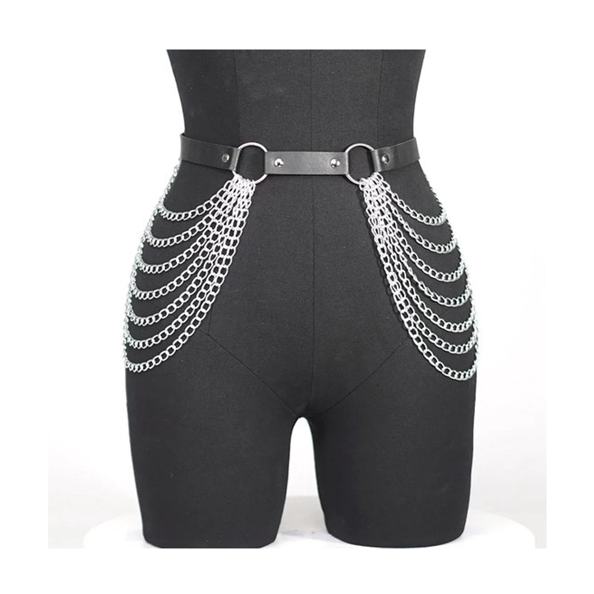 Gemaakt van duurzame materialen, zoals roestvrij staal (RVS) kettingen, essentiële dit heupharnas niet alleen een verleidelijke uitstraling maar ook een lange duur. De RVS kettingen voegen een element luxe toe aan het geheel, terwijl het ontwerp ervoor zorgt dat de aandacht wordt gevestigd op jouw vrouwelijke vormen.