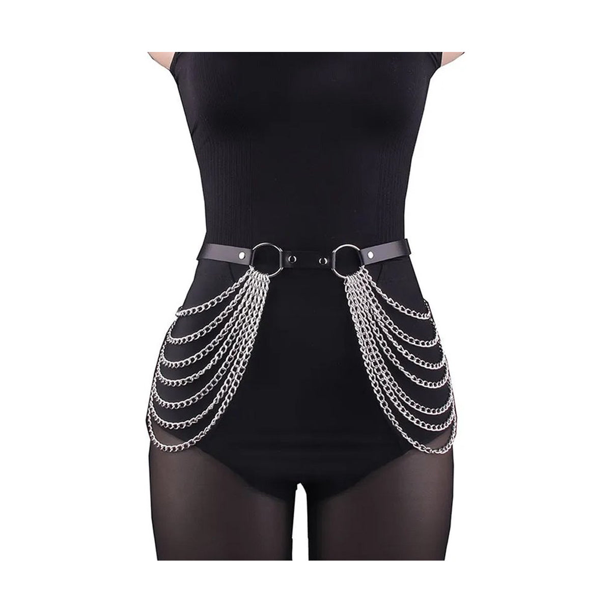 Ontketen je verlangens en omarm de kracht van sensualiteit met onze Bodychain heupharnas, ontworpen voor avontuurlijke vrouwen. Dit gedurfde en verleidelijke accessoire is geschikt voor een scala aan gelegenheden, waaronder BDSM, festivals en rollenspellen.