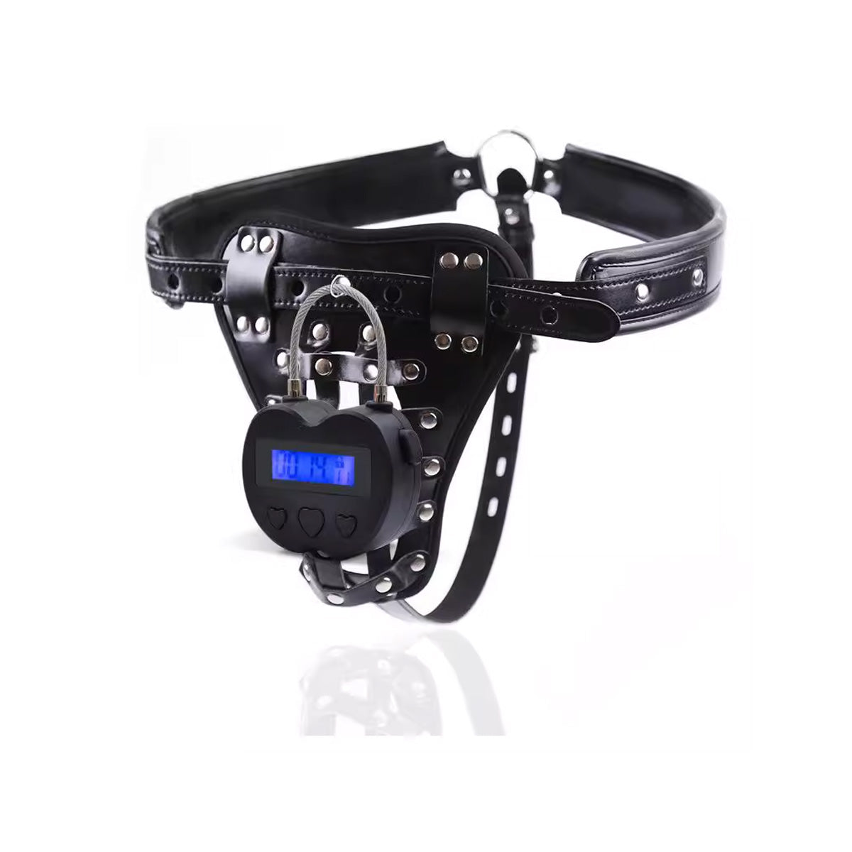 Lederen kusheidsgordel met hard tijdslot, verstelbaar en geschikt voor penis-bondage. Ideaal voor langdurige controle en BDSM-sessies. Gemaakt van stevig leer en metaal.