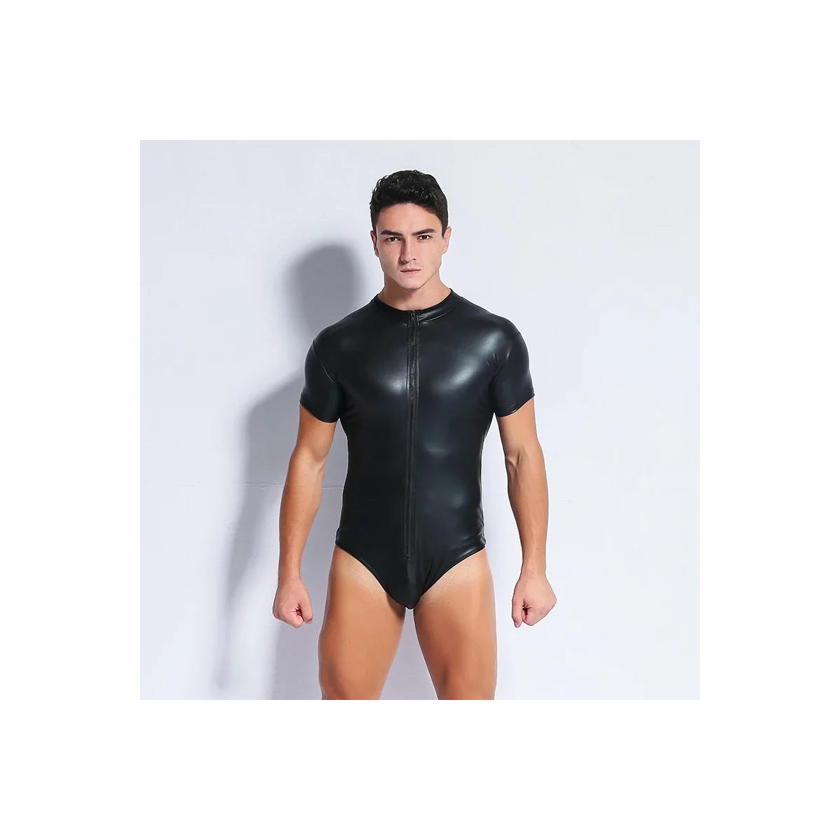 Deze latex wetlook bodysuit in kort model voor heren is een gewaagde keuze voor spannende gelegenheden. Met zijn ritsen aan de voorkant is het gemakkelijk aan en uit te trekken, en begrijpelijk het een extra speelelement toe aan je outfit. De uitdagende look van de bodysuit maakt perfect voor BDSM, rollenspellen en andere spannende dates. De hoge kwaliteit van het materiaal zorgt voor een comfortabele en fijne pasvorm. Durf jezelf uiten in deze verleidelijke latex bodysuit en voeg wat pittige flair toe aan je erotische avonturen!