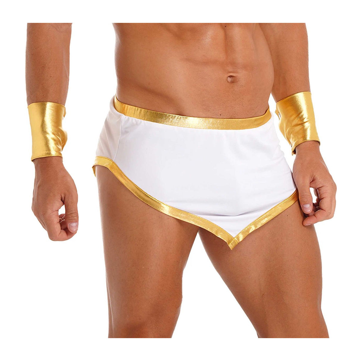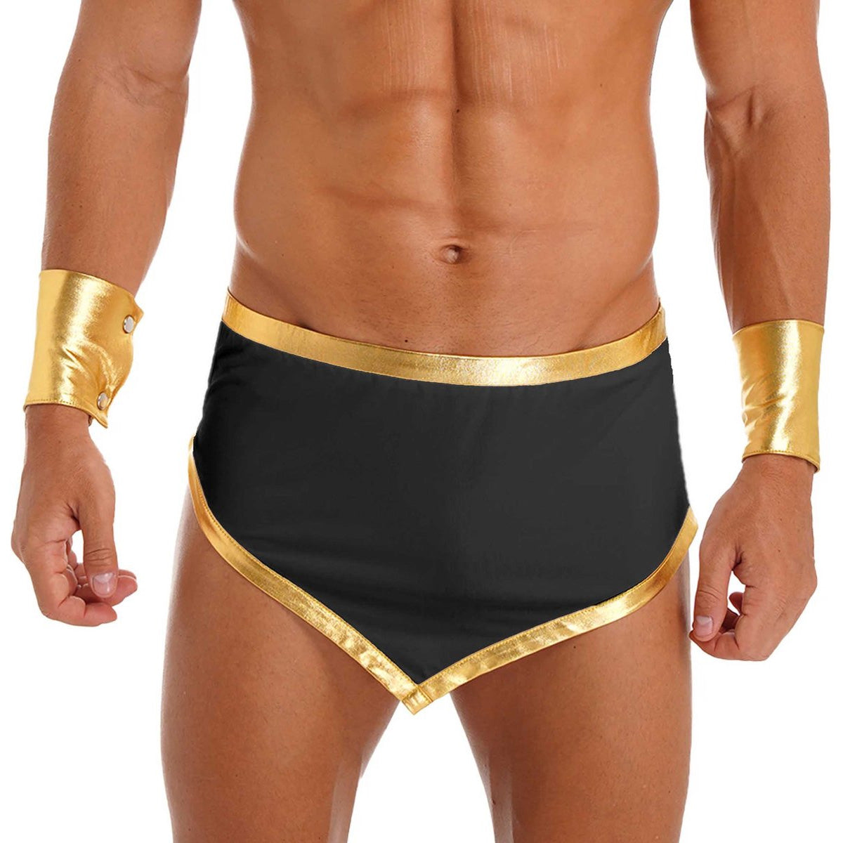 Betreed de wereld van verleiding met onze erotische rollenspel lingerie set voor heren, ontworpen voor onvergetelijke momenten van passie en opwinding. Deze sexy onderbroek met open kruis biedt een combinatie van verfijning en uitdaging, perfect voor intieme avonturen. Deze verleidelijke lingerie set bevat niet alleen een onderbroek met een vrij hangende penis voor ultiem comfort en vrijheid, maar wordt ook geaccentueerd met delicate armbandjes voor een vleugje luxe. Gemaakt van hoogwaardige stretchmaterialen, past deze lingerie perfect om het lichaam en voegt het een vleugje sensualiteit toe aan elke beweging.