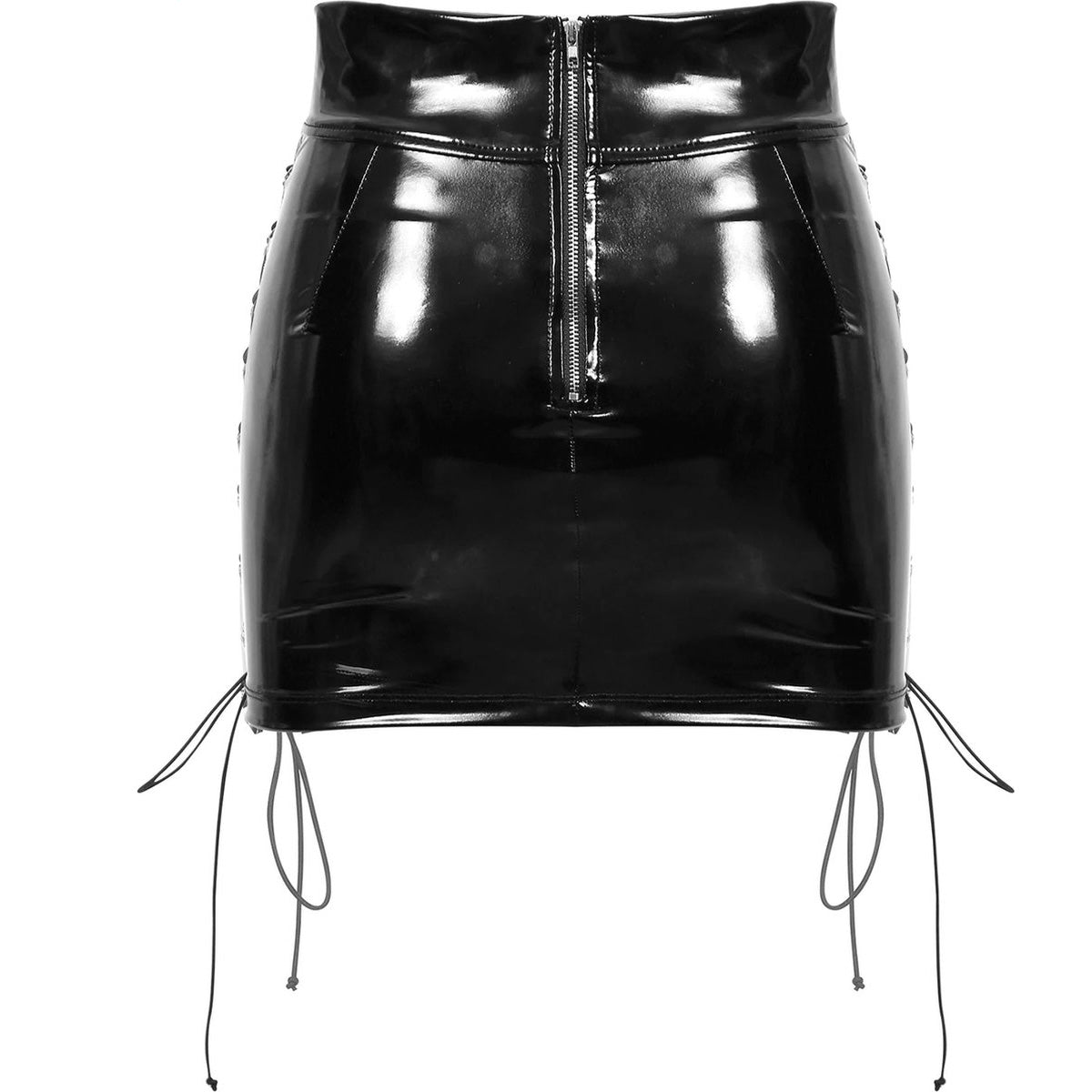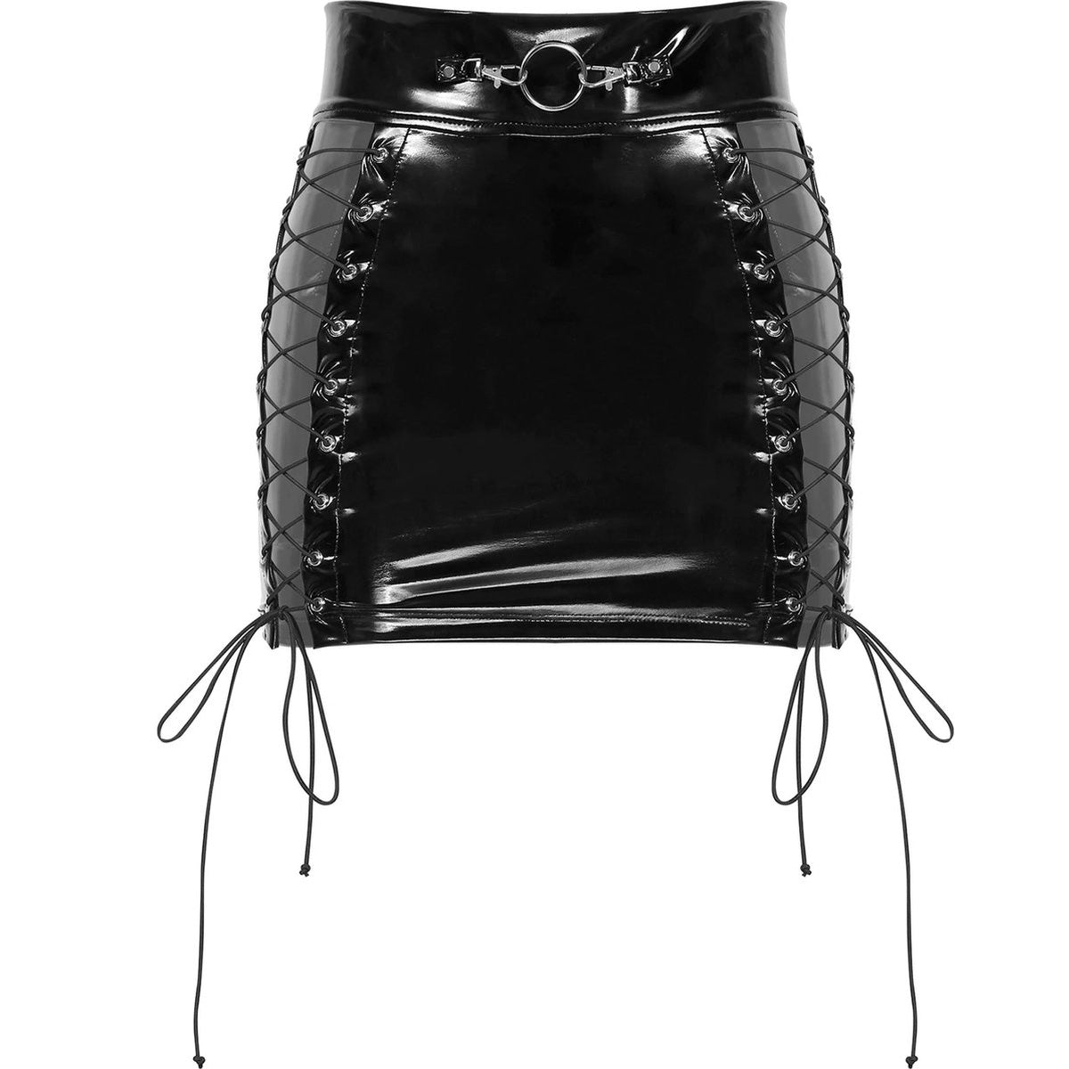 Deze latex rok is een verleidelijk kledingstuk met een transparante look aan de onderkant, gemaakt door middel van touwen die door het leder zijn gevlochten. Dit geeft de rok een extra uitdagende uitstraling. De rok heeft een rits aan de achterzijde, waardoor hij gemakkelijk aan en uit te trekken is. Het materiaal is gemaakt van hoogwaardig PU-leer en heeft een gladde en duurzame afwerking. Dit maakt de rok niet alleen comfortabel om te dragen, maar ook een echte eyecatcher voor een spannende avond uit of een speciale gelegenheid.