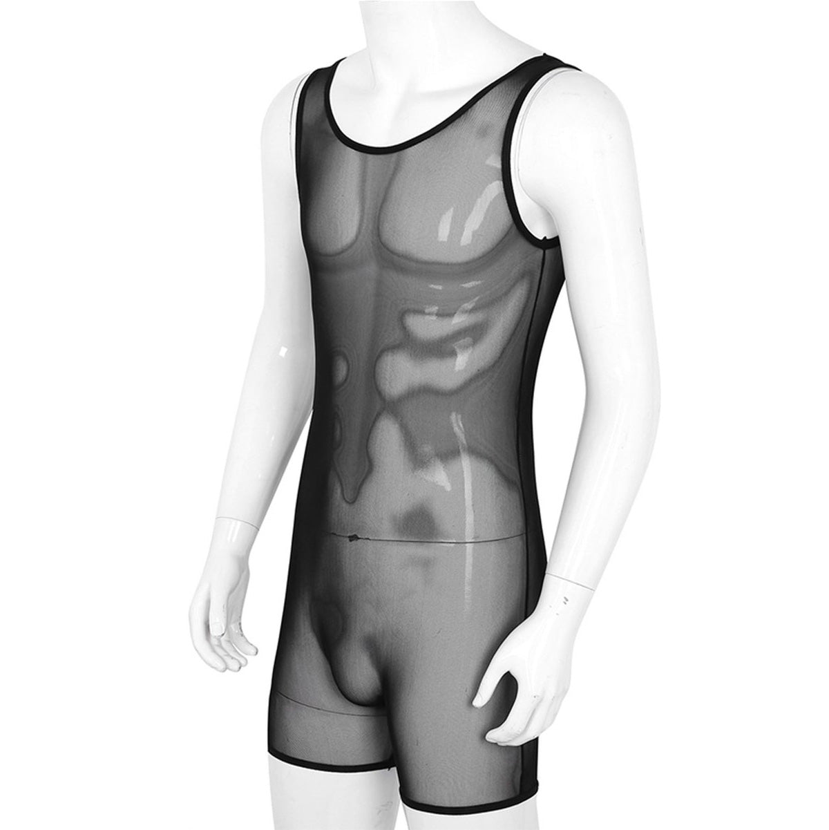 Kenmerken: Sensueel ontwerp: Deze jumpsuit voor heren is ontworpen om de aandacht te trekken en een opwindende uitstraling te bieden. Het doorzichtige materiaal geeft een verleidelijke glimp van de huid en zorgt voor een spannende en sexy look.