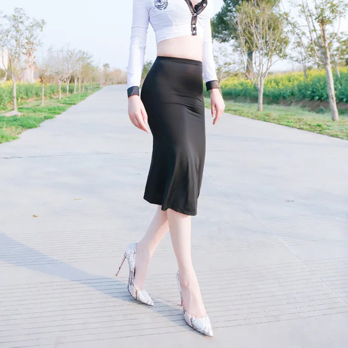 Stap in de wereld van verleiding en sensualiteit met onze licht doorschijnende zwarte lange rok, een onmisbaar stuk voor liefhebbers van erotische mode. Deze rok, ontworpen om te intrigeren en te betoveren, is perfect voor vrouwen die hun innerlijke godin willen omarmen. Met zijn transparante ontwerp biedt deze rok een speelse glimp van wat eronder ligt, waardoor een aura van mysterie en opwinding ontstaat. De panty-stijl en stretchmateriaal zorgen voor een comfortabele pasvorm en een flatterend silhouet, terwijl de lengte tot aan de knieën een vleugje elegantie toevoegt aan elke look.