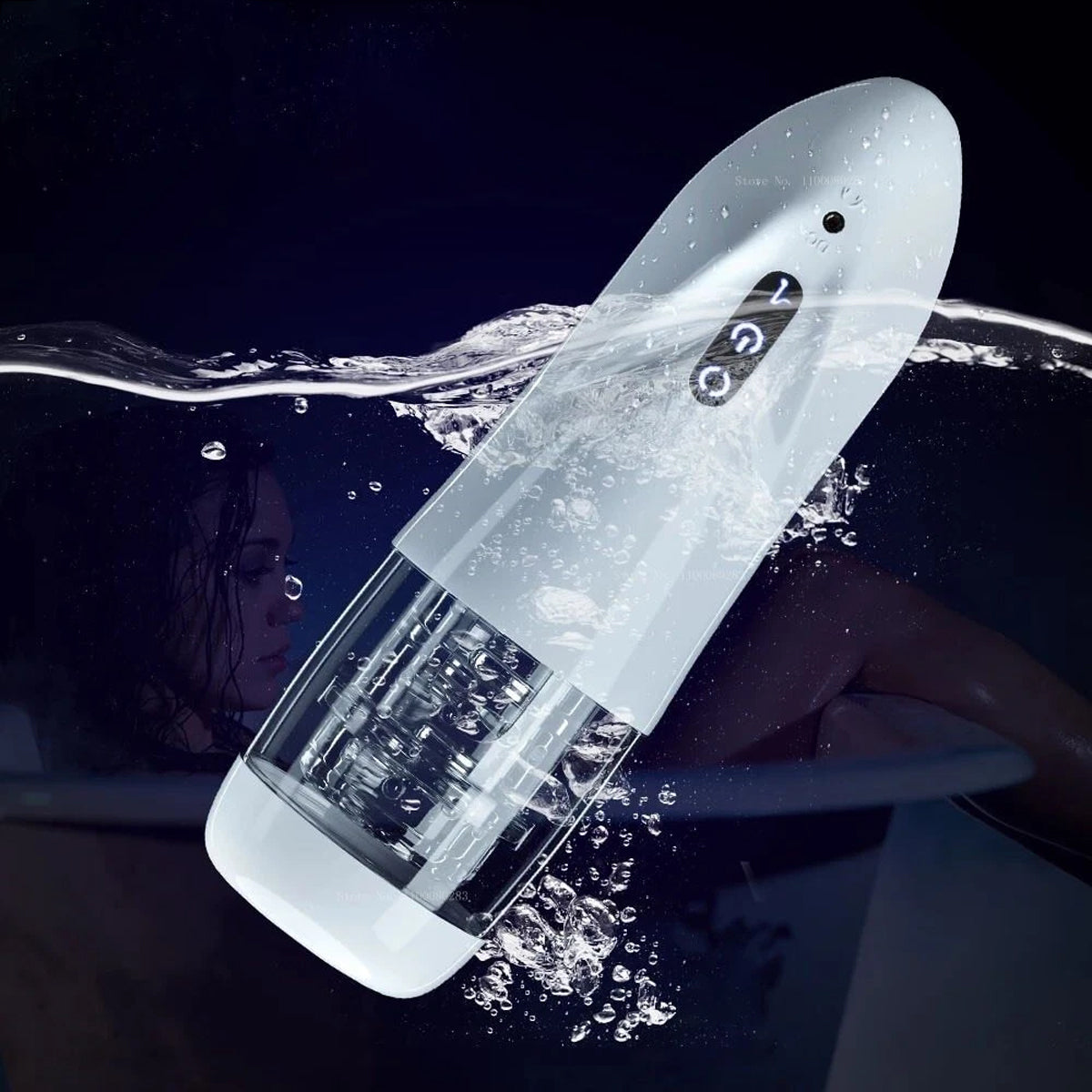 Masturbator met verwarmingsfunctie, roterend en zuigende standen. Luxe uitvoering, waterdicht, inclusief gratis glijmiddel. Simuleer een pijpbeurtgevoel met verschillende standen.