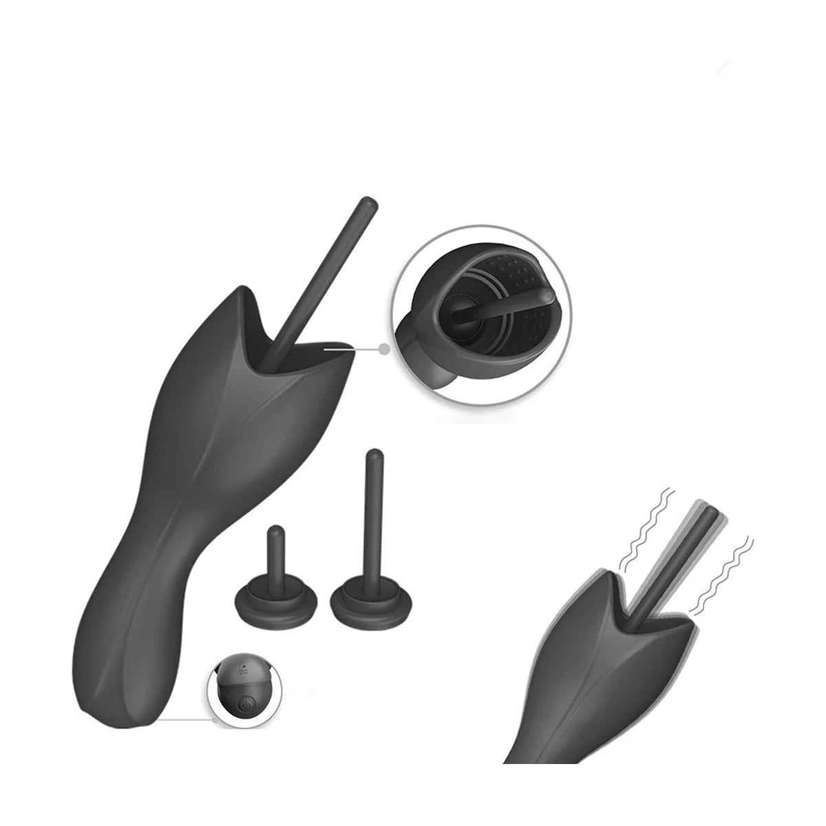 3 Opzetstukken: Het speeltje wordt geleverd met 3 verschillende opzetstukken, waardoor je de mogelijkheid hebt om de lengte en dikte aan te passen aan je voorkeuren en comfortniveau. Hierdoor is het geschikt voor zowel beginners als ervaren gebruikers. De opzetsukk zijn 10, 5 en 2CM lang en allemaal 5MM breed.